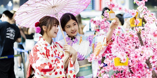 Delight in authentic Japanese dishes like Crispy Shrimp Cake, Hiroshima Yaki, Green Tea Pudding with Red Bean Paste and Sakura Latte Waffle from the Beer Garden food trucks and stalls, paired with iced beer, Japanese sake or sake cocktails.